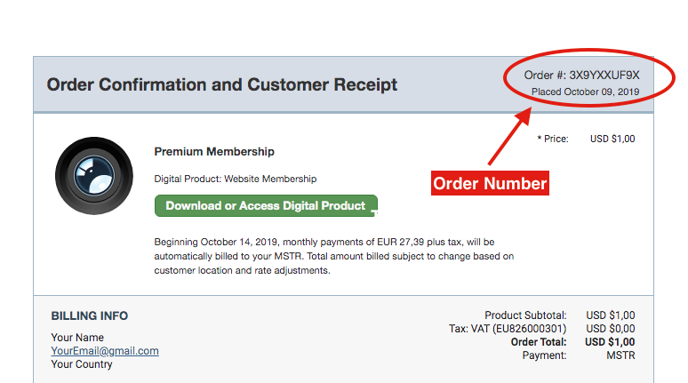 Search for your mail using the keyword: clickbank to locate your online receipt.